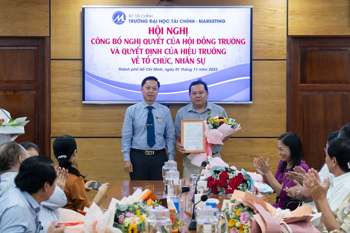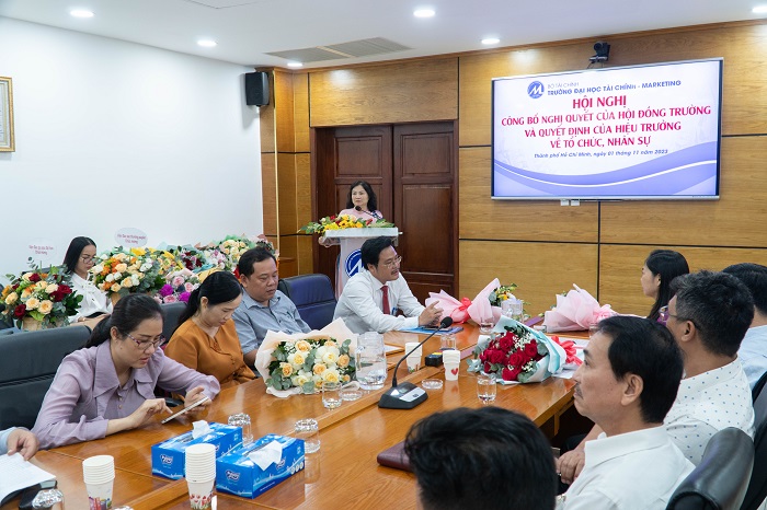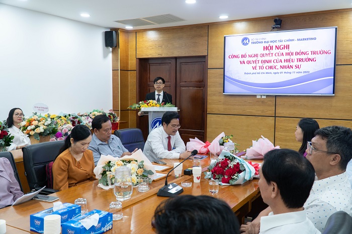 Chiều ngày 01/11/2023, Trường Đại học Tài chính - Marketing đã tổ chức Hội nghị công bố Nghị quyết của Hội đồng Trường và quyết định của Hiệu trưởng về tổ chức, nhân sự.