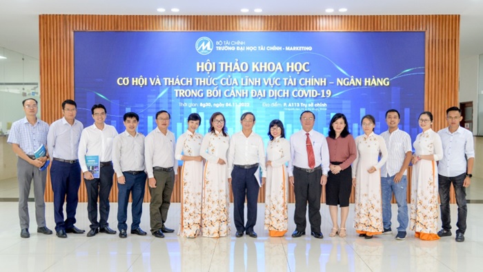 Sáng ngày 04/11/2022, Trường Đại học Tài chính – Marketing (UFM) đã tổ chức Hội thảo khoa học với chủ đề “Cơ hội và thách thức của ngành Tài chính – Ngân hàng trong bối cảnh đại dịch Covid-19”. Tham dự và chủ trì Hội thảo có sự hiện diện của TS. Lê Trung Đạo, Phó Hiệu trưởng Trường Đại học Tài chính – Marketing; PGS.TS Nguyễn Thị Mỹ Linh, Phó Trưởng Khoa Tài chính – Ngân hàng, Trường Đại học Tài chính – Marketing; TS. Trần Quốc Tuấn, Giám đốc Trung Tâm NCKH và Đào tạo Chứng Khoán, Ủy ban chứng khoán Nhà Nước cùng đông đảo các nhà khoa học, đại diện các doanh nghiệp và các thầy cô giảng viên trong, ngoài trường.
