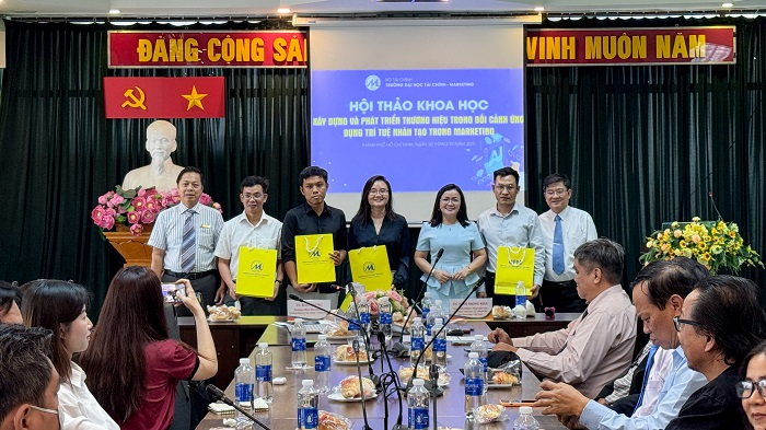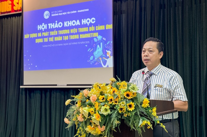 Sáng ngày 30/10/2025, Khoa Marketing tổ chức Hội thảo khoa học “Xây dựng và phát triển thương hiệu trong bối cảnh ứng dụng trí tuệ nhân tạo trong Marketing”. Tham dự hội thảo có TS. Lê Trung Đạo, Phó Hiệu trưởng; PGS.TS Huỳnh Thị Thu Sương, Trưởng phòng Quản lý khoa học, TS Bảo Trung, Trưởng khoa Marketing cùng các chuyên gia lĩnh vực Marketing, các doanh nghiệp, lãnh đạo khoa/bộ môn thuộc khoa marketing, giảng viên, nghiên cứu sinh, học viên cao học và sinh viên ngành marketing.