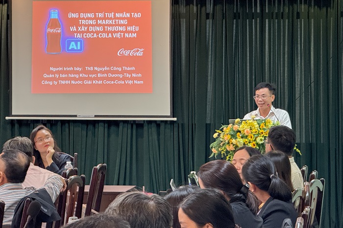 ThS. Nguyễn Công Thành, Quản lý bán hàng khu vực Bình Dương - Tây Ninh, Công ty Coca-Cola Việt Nam trình bày tham luận: “Ứng dụng trí tuệ nhân tạo trong marketing và xây dựng thương hiệu tại Coca-Cola Việt Nam”