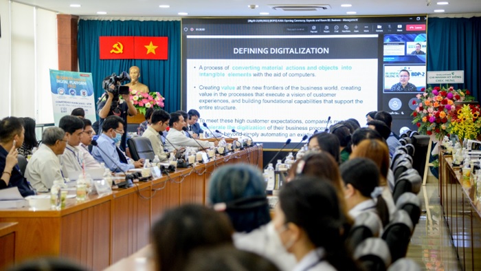 Sáng 23/9/2022, Trường ĐH Tài chính – Marketing (UFM) đã tổ chức Hội thảo quốc tế với chủ đề: Kinh doanh trên nền tảng công nghệ số - Business based on Digital Platform 2022. Hội thảo được tổ chức dưới hình thức triếp và trực tuyến với sự phối hợp thực hiện cùng với Trường Đại học Tài chính – Quản trị kinh doanh (UFBA) và Trường Đại học Ngân hàng TP.HCM (BUH).