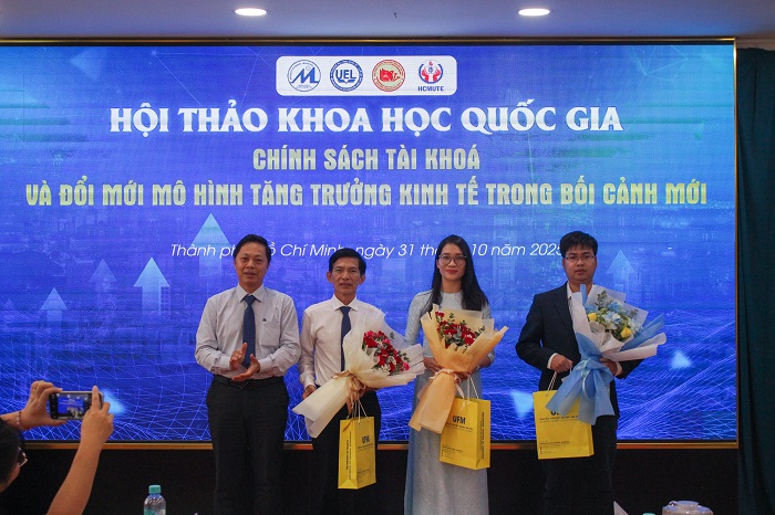 Chiều ngày 31/10/2025, tại cơ sở 27 Tân Mỹ, Trường Đại học Tài chính – Marketing (UFM) phối hợp cùng Học viện Chính trị khu vực II, Trường Đại học Kinh tế - Luật (ĐH Quốc gia TP.HCM) và Trường Đại học Sư Phạm Kỹ Thuật TP.HCM tổ chức Hội thảo quốc gia với chủ đề “Chính sách tài khóa và đổi mới mô hình tăng trưởng kinh tế trong bối cảnh mới”.