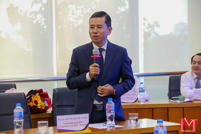 PGS.TS. Trần Nguyễn Khánh Hải, Khoa QTKD trình bày tham luận. Hình ảnh: Đức Huy - PVT