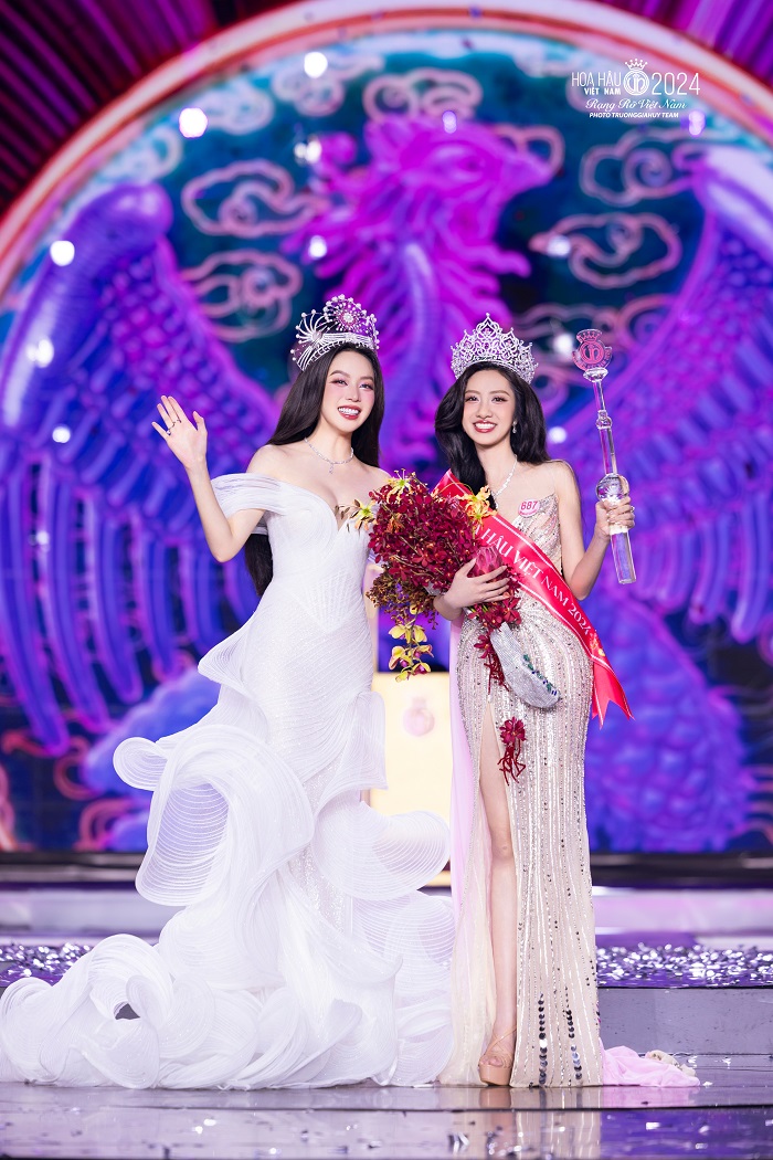 Vương miện Hoa hậu Việt Nam 2024 được trao cho Hà Trúc Linh từ Hoa hậu Thanh Thủy