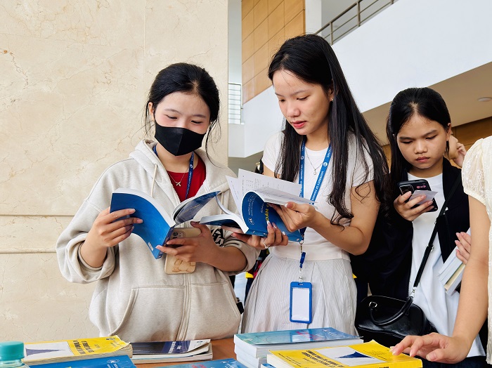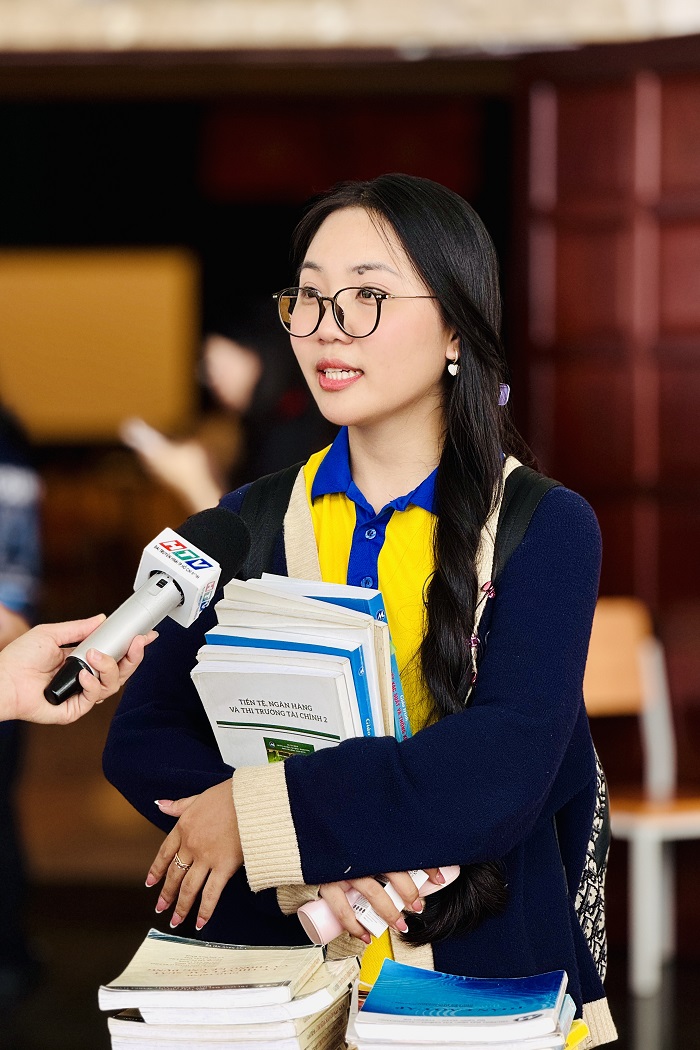 Chia sẻ cảm nhận tại ngày hội, sinh viên Võ Ngọc Bảo Trân – Tân sinh viên Khoa Kế toán – Kiểm toán cho biết “Trong Ngày hội, em đã lựa chọn cho mình những quyển sách có liên quan đến chương trình học của bản thân như sách đại cương (Pháp luật đại cương, Kinh tế vi mô, Kinh tế vĩ mô, Toán cao cấp,…). Đây là lần đầu tiên em được tham gia một hoạt động ý nghĩa như vậy, vì đây là những sách mà các anh chị sinh viên khóa trước đã sử dụng, rất gần gũi với chương trình học của em. Nhờ vậy, em có thể tiết kiệm một phần lớn chi phí cho những ngày đầu bước chân vào giảng đường Đại học”.