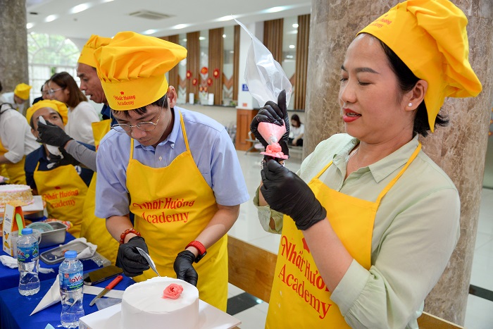 Điểm “bùng nổ” của chương trình đến từ Hội thi trang trí bánh kem với bầu không khí sôi nổi, vui tươi và đầy tính sáng tạo. Các đội thi đã tranh tài bởi sự khéo tay bằng những mẫu bánh được chăm chút tỉ mỉ, phối màu tinh tế, trang trí đẹp mắt và mang nhiều ý tưởng độc đáo. Mỗi chiếc bánh không chỉ là sản phẩm dự thi, mà còn thể hiện tinh thần đồng đội, sự gắn kết giữa các đơn vị và nguồn năng lượng tích cực lan tỏa trong ngày 8/3. Nhiều phần thi khiến khán giả ấn tượng bởi tính thẩm mỹ, độ công phu và thông điệp gửi gắm về sự trân trọng dành cho phụ nữ.