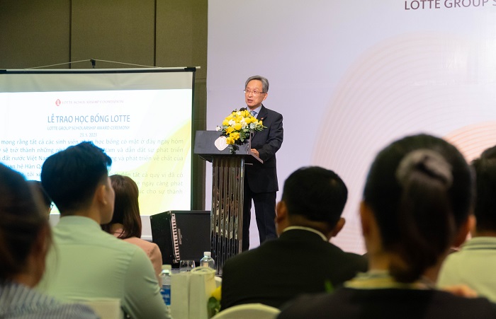 Ông Chun Yung Woo - Chủ tịch Quỹ học bổng Lotte phát biểu tại buổi lễ