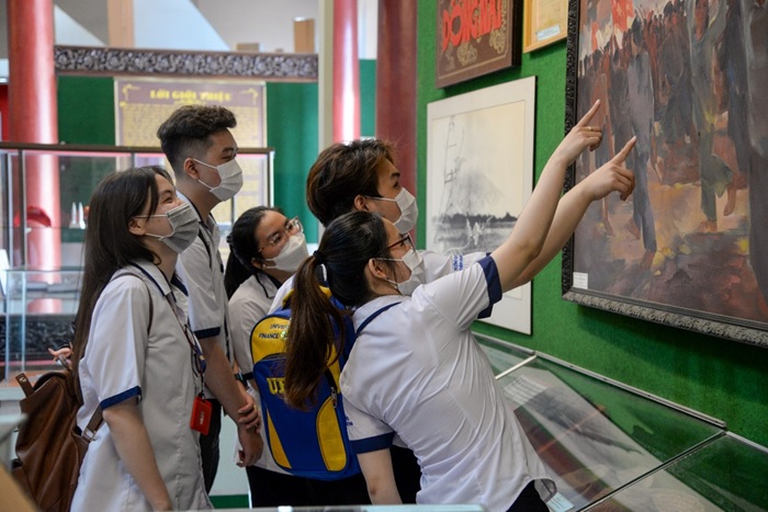 Tiếp đó, sinh viên được các anh, chị là thuyết minh viên giới thiệu cụ thể từng chuyên đề, từ các tài liệu đến các hiện vật có giá trị lịch sử, văn hoá, khoa học, phản ánh quá trình xây dựng, chiến đấu, trưởng thành của quân và dân Quân khu 7 trong sự nghiệp giải phóng dân tộc, thống nhất đất nước, xây dựng và bảo vệ tổ quốc.