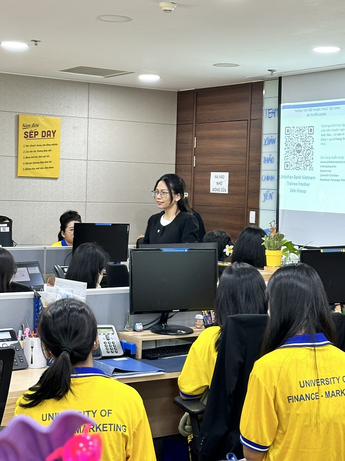 Sinh viên UFM tham gia học tập thực hành, thực tế nâng cao kiến thức chuyên môn về ngân hàng số tại Shinhan Bank