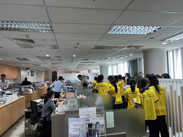 Sau phần chia sẻ kiến thức về ngân hàng số, sinh viên UFM được tham gia trải nghiệm thực tế tại các phòng ban khác nhau của Shinhan Bank. Tại đây các bạn được trực tiếp quan sát quy trình làm việc của các nhân viên cũng như tìm hiểu về các sản phẩm và dịch vụ của ngân hàng. Qua đó các bạn đã có cái nhìn trực quan về môi trường làm việc của ngân hàng, đồng thời hiểu rõ hơn về các nghiệp vụ ngân hàng và vai trò của từng phòng ban.