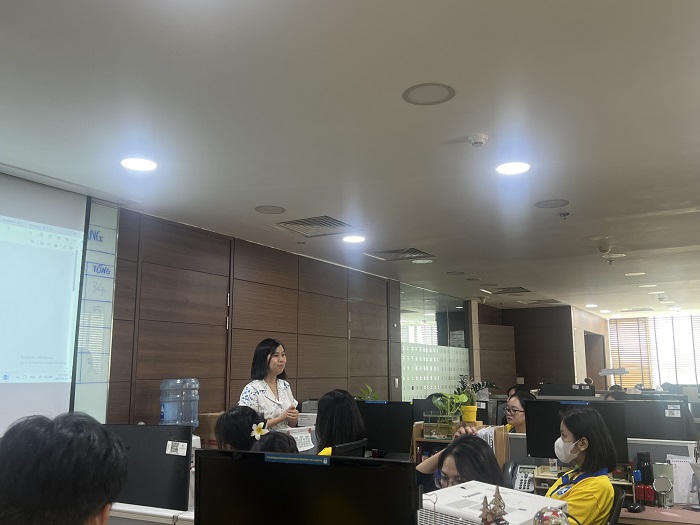 Buổi tham quan bắt đầu với phần giới thiệu về sự phát triển của ngân hàng số cũng như sự phát triển của công nghệ và những ảnh hưởng của công nghệ đến hoạt động của ngân hàng. Các bạn đã có cơ hội được lắng nghe các anh chị giới thiệu về lịch sử hình thành và phát triển của ngân hàng số trên thế giới và tại Việt Nam, đồng thời phân tích những lợi ích của ngân hàng số và công nghệ đối với khách hàng và ngân hàng. Bên cạnh đó, các anh chị cũng chia sẻ về những kiến thức chuyên môn về ngân hàng số , những tiện lợi mà ngân hàng số mang lại và những kỹ năng cần thiết mà sinh viên cần trang bị để có thể thành công trong lĩnh vực ngân hàng số cũng như hành trang đi làm sau này.