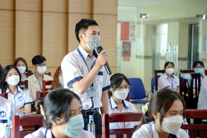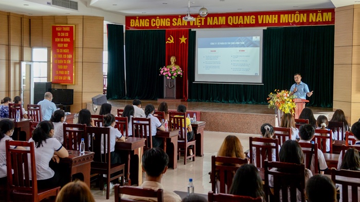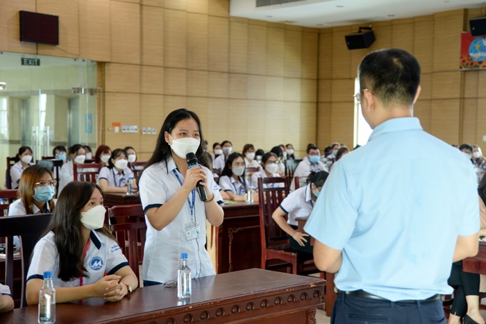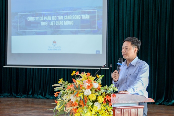 Ông Phạm Văn Đang, Trưởng bộ phận chuỗi cung ứng của ICD TCST giới thiệu và giải đáp các thắc mắc của sinh viên về các hoạt động của công ty