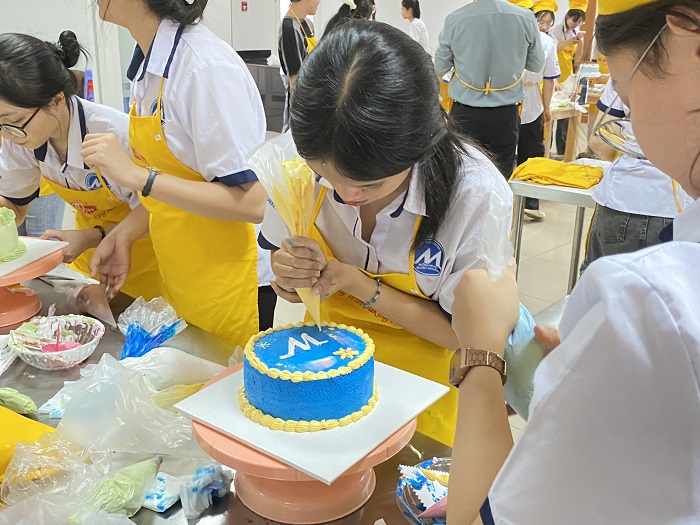 Không những vậy, các bạn sinh viên còn được trải nghiệm lần đầu chính tay mình trang trí một chiếc bánh kem thật xinh xắn, độc đáo theo sở thích và đem chiếc bánh kem ấy tặng cho người thân của mình. Qua đó, sinh viên sẽ được trang bị cho bản thân những kiến thức thật quý giá và bổ ích về quy trình để làm bánh kem, hiểu được những công đoạn trong quá trình làm bánh từ đó kích thích những đam mê và có thể là các bạn sẽ trở thành những “thợ làm bánh” tài hoa trong tương lai.