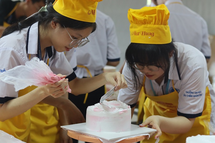 Với sự đồng hành của các chuyên gia làm bánh đến từ Trung tâm dạy nghề bánh Nhất Hương và sự hỗ trợ nhiệt tình của các thầy cô trong khoa Du lịch thuộc bộ môn Nhà hàng – Khách sạn, các bạn sinh viên được chia thành các đội thi và cũng đã tự tay hoàn thành những chiếc bánh kem xinh yêu bằng cả công sức và tâm huyết của mình.