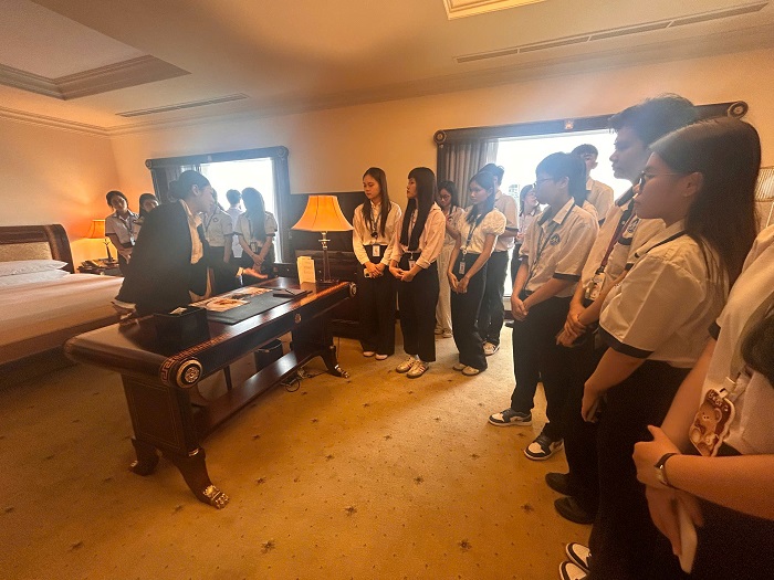 Sinh viên tham quan và tìm hiểu về bộ phận Buồng phòng