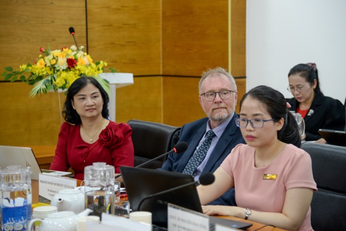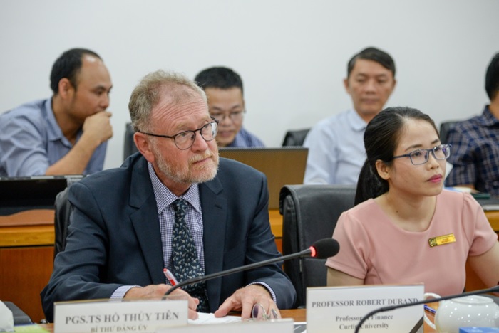 GS. Robert B Durand từ Đại học Curtin trong bài tham luận của mình, đã đánh giá cao nổi lực của trường UFM và chia sẻ một số giải pháp để nâng cao sếp hạng trường đến năm 2045. Bài chia sẻ của Giáo sư tập trung vào 3 vấn đề (1) Giới thiệu về Đại học Curtin, (2) Nhận định về tình hình nghiên cứu ở Australia, (3) Đội ngũ giảng viên, sinh viên và cả hạ tầng, (4) Hợp tác ở Autralia, cụ thể là ARN (Australia research networks) chuyên nghiên cứu về tài chính ở Úc.