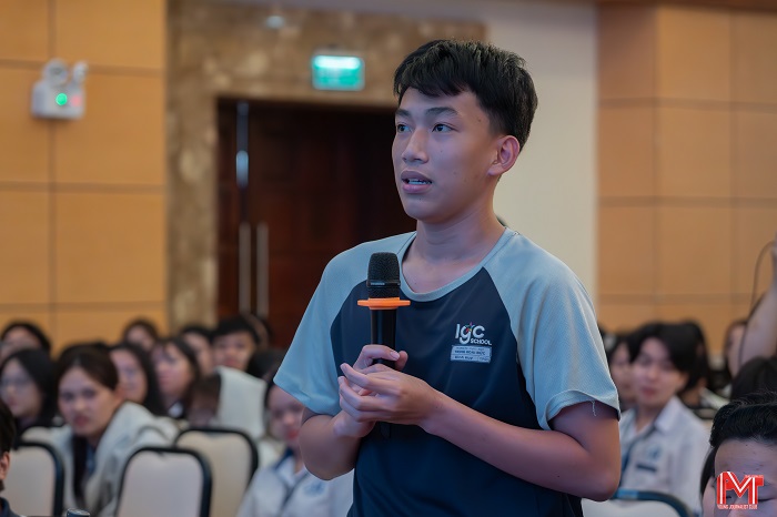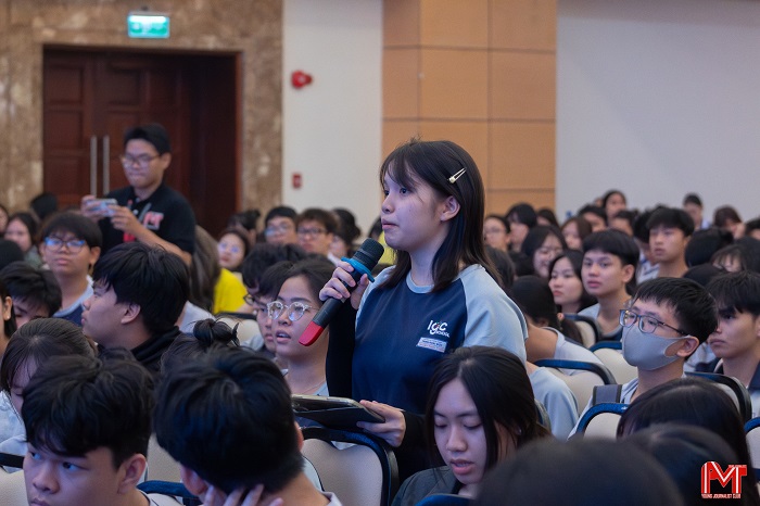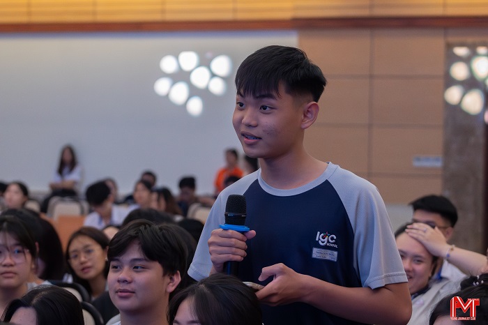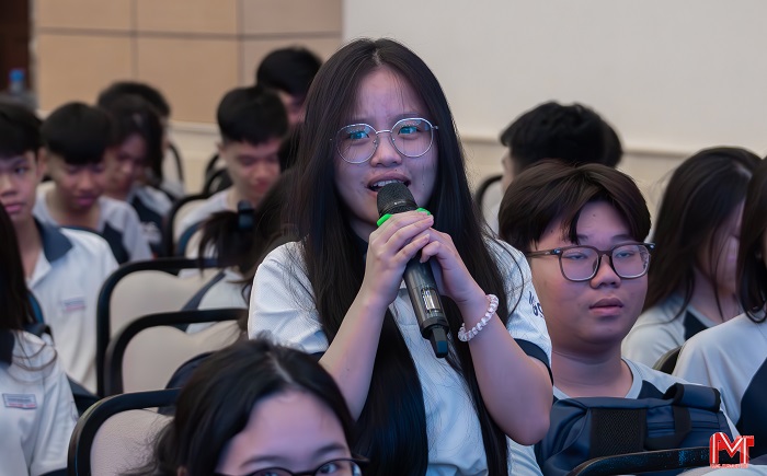 Học sinh THPT của Trường Trịnh Hoài Đức hăng hái đặt câu hỏi tại chương trình giao lưu