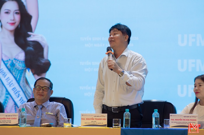 Nội dung trọng tâm của chương trình tập trung vào phiên đối thoại chuyên sâu giữa học sinh lớp 12 Trường Trịnh Hoài Đức và đội ngũ chuyên gia, giảng viên giàu kinh nghiệm của UFM. Không khí buổi trao đổi trở nên đặc biệt sôi nổi khi các em hăng hái đặt ra hàng loạt câu hỏi thực tiễn, xoay quanh đặc thù các nhóm ngành từ Kinh tế chính trị, Marketing, Kế toán, Kiểm toán, Tài chính – Ngân hàng, Kinh doanh quốc tế, Làm thế nào để khởi nghiệp thành công, các chính sách hỗ trợ người học như thế nào? Cơ hội việc làm? .... Mọi thắc mắc mang tính thực tiễn cao đều được Ban tư vấn bóc tách chi tiết và giải đáp thỏa đáng, giúp các em tháo gỡ những băn khoăn về chọn ngành, chọn nghề trong kỷ nguyên số.