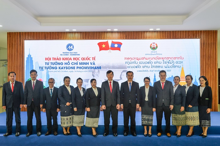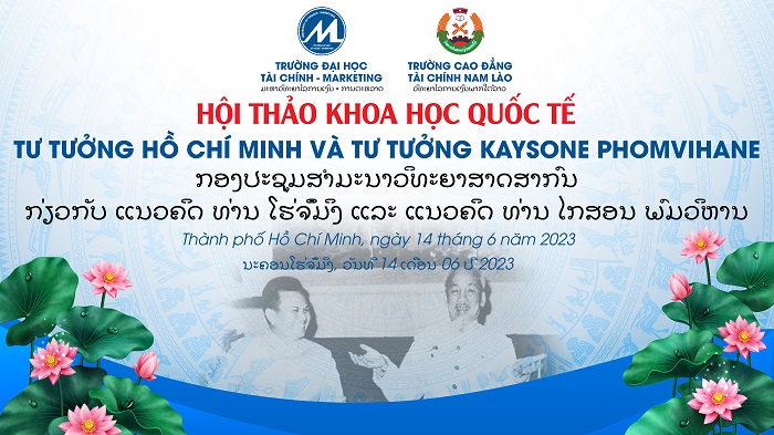 Sáng ngày 14/6/2023, tại Trụ sở 778 Nguyễn Kiệm, phường 4, quận Phú Nhuận, thành phố Hồ Chí Minh, Việt Nam, Trường Đại học Tài chính - Marketing và Trường Cao đẳng Tài chính miền Nam Lào, nước CHDCND Lào đồng tổ chức Hội thảo khoa học quốc tế, chủ đề “Tư tưởng Hồ Chí Minh và Tư tưởng Kaysone Phomvihane về tài chính - ngân sách”. Hội thảo khoa học quốc tế là nội dung thuộc chương trình hợp tác giữa Trường Đại học Tài chính - Marketing và Trường Cao đẳng Tài chính miền Nam Lào đã được Bộ Tài chính Việt Nam và Bộ Tài chính Lào thống nhất trong Chương trình hợp tác giữa Bộ Tài chính 2 nước Việt Nam - Lào năm 2023.