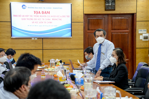 TS. Huỳnh Thế Nguyễn, trưởng phòng Quản lý đào tạo trường Đại học Tài chính - Marketing kiến nghị nhanh chóng xây dựng chương trình hành động giữa 2 đơn vị. Hướng tới đào tạo đa tầng, đa ngành phù hợp với xu thế hiện nay. Khai thác thế mạnh của 2 bên để tận dụng nguồn lực, điển hình như các cơ sở đào tạo có thể thông qua hợp tác để công nhận kết quả học tập, trao đổi sinh viên theo thông tư 08 của Bộ GD&ĐT, công nhận 1 số học phần giữa 2 bên trong chương trình Đào tạo Sau Đại học theo thông tư 23.