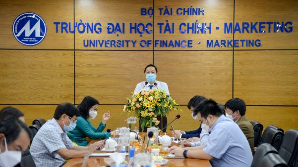 Sáng ngày 24/02/2022, trường Đại học Tài chính – Marketing đã tổ chức Toạ đàm với chủ đề: “Trao đổi, hợp tác trong nghiên cứu khoa học và đào tạo giữa trường Đại học Tài chính – Marketing (UFM) và Học viện Tài chính (AOF)”. Tham dự Toạ đàm có sự hiện diện của TS.GVCC Nguyễn Đào Tùng, Chủ tịch Hội đồng trường Học viện Tài chính; TS. Bùi Thị Yến Linh, Phó Hiệu trưởng trường Đại học Tài chính – Kế toán (Quảng Ngãi – Kết nối trực tuyến); PGS.TS Hồ Thuỷ Tiên, Bí thư đảng uỷ, Chủ tịch Hội đồng trường trường Đại học Tài chính – Marketing; TS. Lê Trung Đạo, Phó Hiệu trưởng; TS. Nguyễn Văn Hiến, Phó Hiệu trưởng cùng các thầy cô là lãnh đạo các đơn vị thuộc trường.