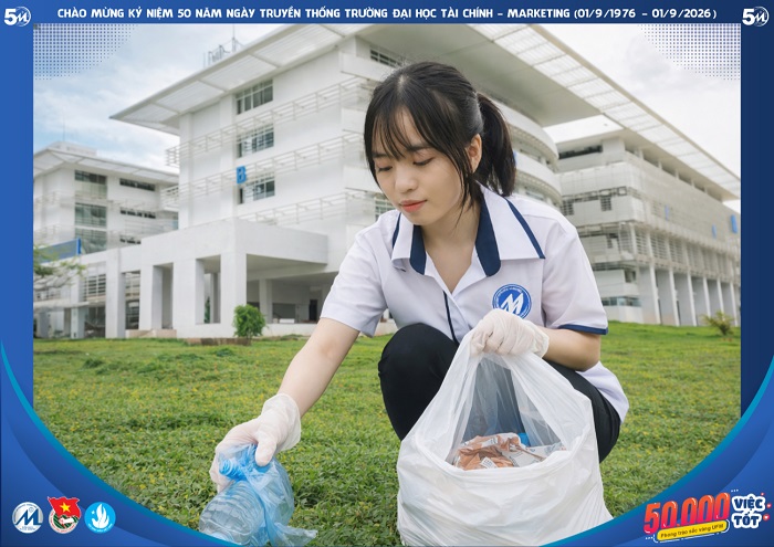 Phong trào “50.000 Việc tốt – Sắc vàng UFM đi muôn nơi” được triển khai từ đầu năm 2026, hướng đến chào mừng Kỷ niệm 50 năm Ngày truyền thống Trường Đại học Tài chính – Marketing (01/9/1976 – 01/9/2026). Con số 50.000 không chỉ mang ý nghĩa biểu trưng cho chặng đường 50 năm hình thành và phát triển của Nhà trường mà còn thể hiện kỳ vọng về sự lan tỏa rộng khắp của những hành động đẹp trong toàn thể sinh viên. Với quy mô gần 20.000 sinh viên, phong trào định hướng mỗi đoàn viên, thanh niên tham gia ít nhất hai việc làm tích cực, qua đó góp phần hình thành môi trường học đường văn minh, thân thiện và nhân văn, góp phần giáo dục đạo đức lối sống cho đoàn viên, thanh niên UFM.