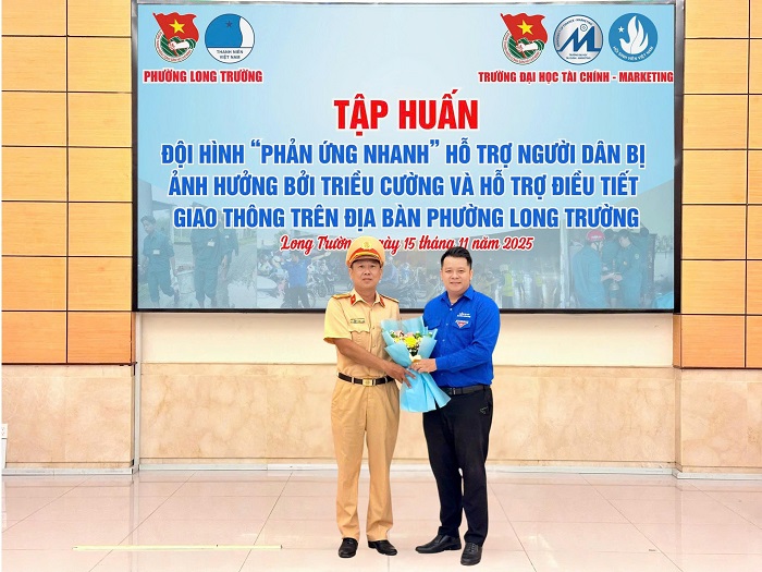Nhằm thể hiện tinh thần xung kích trong thực hiện nhiệm vụ chính trị, đồng hành cùng sự phát triển kinh tế – văn hóa – xã hội của thành phố, đồng thời triển khai hiệu quả nhiệm vụ chính trị của Nhà trường và của tuổi trẻ phường Long Trường. Sáng ngày 15/11/2025, được sự chỉ đạo của Đảng ủy – Ban Giám hiệu Trường Đại học Tài chính – Marketing, Đảng ủy – HĐND – UBND phường Long Trường, Đoàn Thanh niên – Hội Sinh viên Trường ĐH Tài chính – Marketing phối hợp cùng Đoàn Thanh niên – Hội LHTN Việt Nam phường Long Trường tổ chức Lễ ra mắt Đội hình “Phản ứng nhanh” hỗ trợ người dân bị ảnh hưởng bởi triều cường và tham gia điều tiết giao thông trên địa bàn phường.