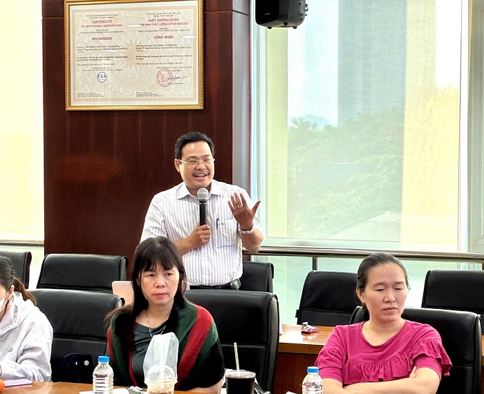 Tham dự và chỉ đạo tập huấn có TS. Cao Tấn Huy – Phó Bí thư Đảng ủy, Phó Hiệu trưởng, Chủ tịch Công đoàn Trường, cùng đại diện lãnh đạo và viên chức khối hành chính đến từ các phòng chức năng, các Viện đào tạo thuộc Trường. Sự hiện diện đông đủ này thể hiện cam kết mạnh mẽ của tập thể Nhà trường trong việc thống nhất quy chuẩn vận hành trên toàn hệ thống.