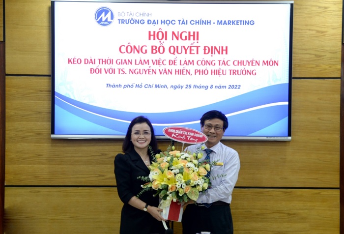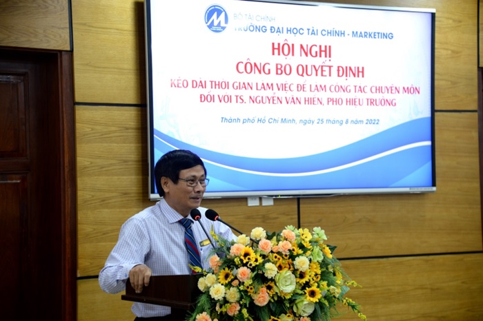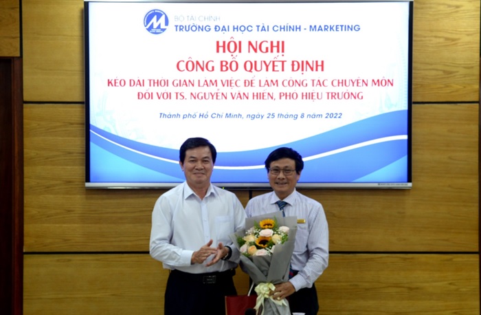 Chiều ngày 25/8/2022, tại Trụ sở 778 Nguyễn Kiệm, phường 4, quận Phú Nhuận, Trường Đại học Tài chính - Marketing đã long trọng tổ chức Hội nghị công bố Quyết định về việc thôi giữ chức vụ quản lý và kéo dài thời gian làm việc để làm công tác chuyên môn đối với TS. Nguyễn Văn Hiến, Phó Hiệu trưởng.