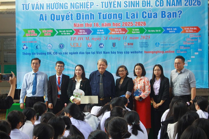 Vào sáng ngày 24/11/2025, Ban tư vấn hướng nghiệp, tuyển sinh Trường Đại học Tài chính – Marketing (UFM) đã tham gia chương trình tư vấn hướng nghiệp với chủ đề “Ai quyết định tương lai của bạn!?” do Công ty Kết nối Văn Hóa Việt (VHV) phối hợp cùng Sở Giáo dục và Đào tạo, Trung tâm hỗ trợ học sinh, sinh viên Thành phố Hồ Chí Minh tổ chức tại hai điểm trường: Trường THPT Giồng Ông Tố và Trường THPT Gò Vấp (TP. Hồ Chí Minh). Chương trình nhằm giúp học sinh định hướng nghề nghiệp, lựa chọn ngành học phù hợp trong bối cảnh thị trường lao động đang có nhiều thay đổi, yêu cầu ngày càng cao về kỹ năng và chuyên môn.