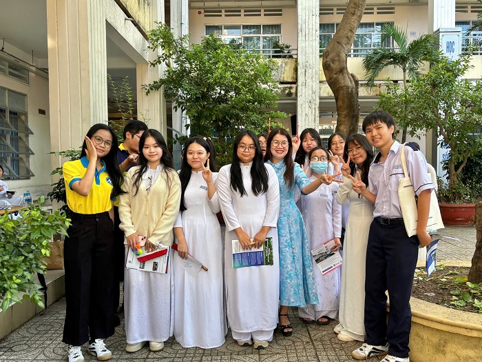 Học sinh của Trường THPT Giồng Ông Tố và Trường THPT Gò Vấp quan tâm đặt nhiều câu hỏi dành cho Ban tư vấn UFM