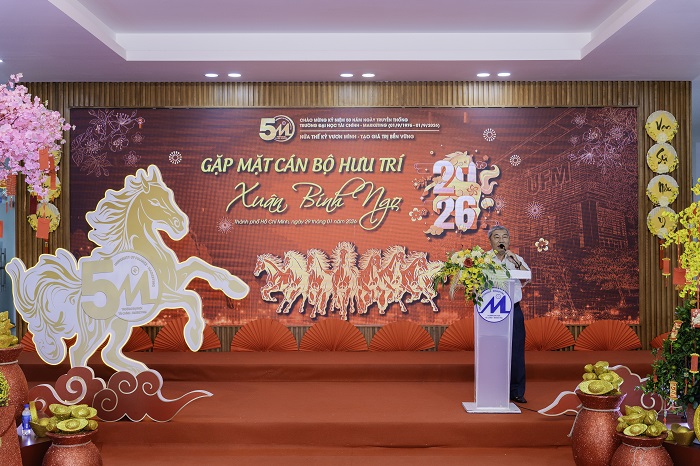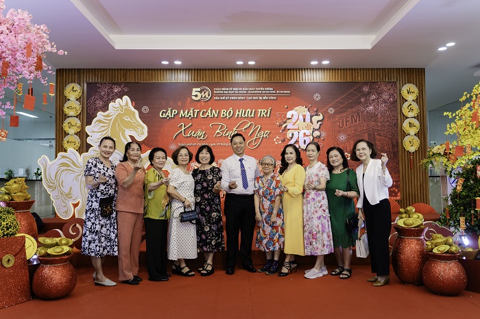 Ngày 29/01/2026, Trường Đại học Tài chính – Marketing tổ chức họp mặt cán bộ hưu trí mừng xuân Bính Ngọ 2026 trong không khí ấm áp và trang trọng. Đại diện lãnh đạo Nhà trường, PGS.TS. Phạm Tiến Đạt, Bí thư Đảng ủy, Hiệu trưởng trực tiếp đón tiếp và cùng các đơn vị trong Trường tổ chức buổi gặp gỡ thân mật, như một lời tri ân sâu sắc gửi đến các thế hệ thầy cô, cán bộ hưu trí đã lặng thầm góp sức dựng xây nền tảng cho UFM.