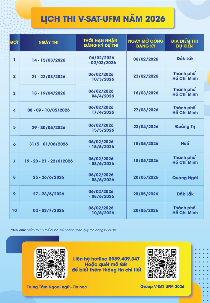 Lịch tổ chức kỳ thi V-SAT UFM 2026: