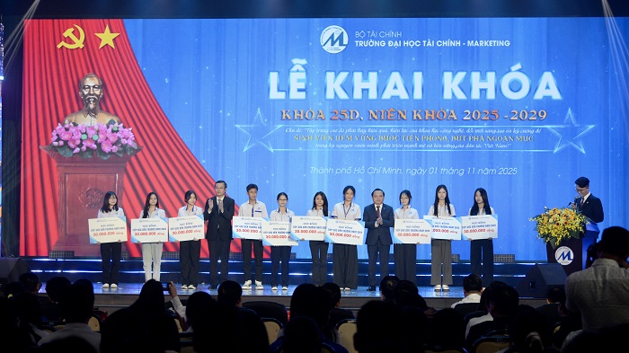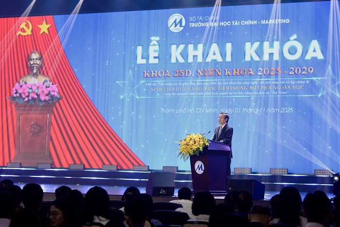 Sáng ngày 01/11/2025, tại Hội trường cơ sở Long Trường, Trường Đại học Tài chính – Marketing (UFM) long trọng tổ chức Lễ Khai khóa 25D – Niên khóa 2025–2029, chào đón gần 6.300 tân sinh viên chính thức trở thành thành viên của đại gia đình UFM. Buổi lễ diễn ra trong không khí trang trọng, ấm áp và đầy cảm xúc.