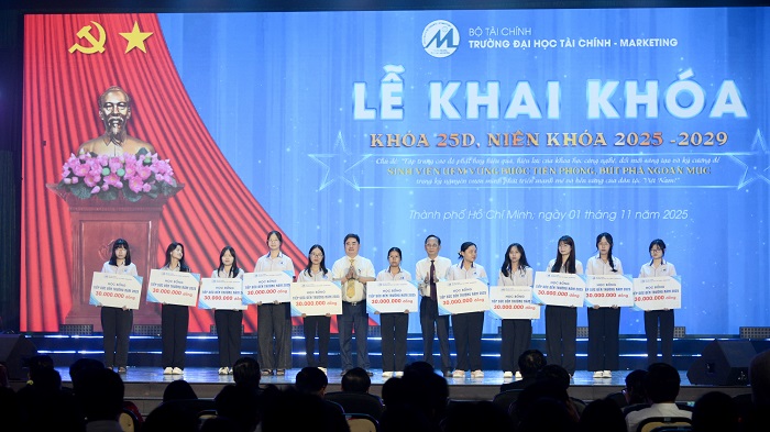 Trong khuôn khổ buổi lễ, Nhà trường đã thực hiện nhiều hoạt động ý nghĩa như: trao học bổng “Tiếp sức đến Trường” cho tân sinh viên có hoàn cảnh khó khăn, vinh danh các thủ khoa – á khoa và sinh viên xuất sắc của các khoa, ra mắt biểu trưng kỷ niệm 50 năm Ngày truyền thống UFM (1976–2026) và thực hiện nghi thức trao cờ truyền thống giữa các thế hệ sinh viên, thể hiện tinh thần “Sáng tạo – Khác biệt – Hiệu quả – Bền vững” của sinh viên UFM.