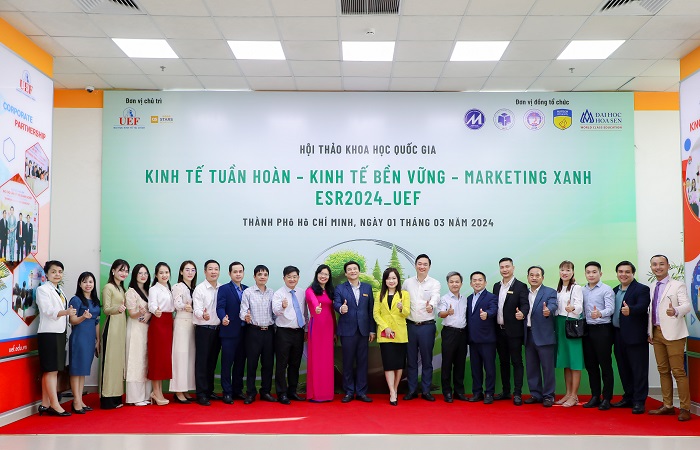 Sáng ngày 01/3/2024 Trường Đại học Tài chính – Marketing (UFM) phối hợp với Trường Đại học Kinh tế - Tài chính Thành phố Hồ Chí Minh (UEF), Trường Đại học Công nghệ Thành phố Hồ Chí Minh, Trường Đại học Công Thương Thành phố Hồ Chí Minh, Trường Đại học Hoa Sen và Trường Đại học Kinh tế quốc dân đồng tổ chức Hội thảo quốc gia với chủ đề “Kinh tế tuần hoàn, kinh tế bền vững, Marketing xanh (ESR2024)”, được tổ chức tại UEF.
