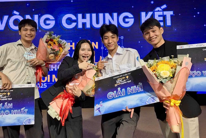 Ở phía Á quân, Shoda (Châu Khắc Sơn - UTLogs Club) khẳng định tinh thần kiên trì và sáng tạo bứt phá. Không chỉ đạt Giải Nhì, đội còn được vinh danh “Sáng tạo nhất” và “Được yêu thích nhất”. Với thông điệp “mỗi ý tưởng là mầm xanh tri thức”, câu chuyện của Shoda cho thấy giải thưởng là kết quả của một quá trình đột phá tư duy, ứng dụng thực tiễn và nỗ lực không ngừng, đồng thời nhấn mạnh vai trò của cộng đồng học thuật - câu lạc bộ, cố vấn, nhà tài trợ - như “đất lành” nuôi ý tưởng lớn.