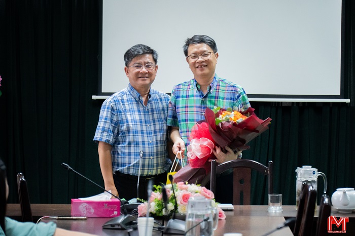 TS. Bảo Trung, Trưởng khoa Marketing thay mặt BTC gửi tặng bó hoa tươi thắm tới TS. Vũ Văn Ngọc