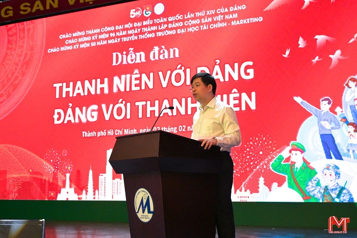 Phát biểu tại diễn đàn, PGS.TS. Phạm Tiến Đạt, Bí thư Đảng ủy, Hiệu trưởng Nhà trường nhấn mạnh vai trò, trách nhiệm của tuổi trẻ UFM và từng đảng viên trong công tác bồi dưỡng chính trị, tư tưởng, nuôi dưỡng khát vọng cống hiến và tinh thần dấn thân. Đồng thời, đồng chí Bí thư Đảng ủy đặt kỳ vọng các cấp ủy, chi bộ, tổ chức Đoàn – Hội, đảng viên, đoàn viên và sinh viên UFM tiếp tục thấm nhuần giá trị bền vững của truyền thống cách mạng, chủ động đổi mới, sáng tạo; qua đó phát huy vai trò nòng cốt của tuổi trẻ trong xây dựng tổ chức Đảng vững mạnh, đưa Nghị quyết Đại hội XIV sớm đi vào thực tiễn.