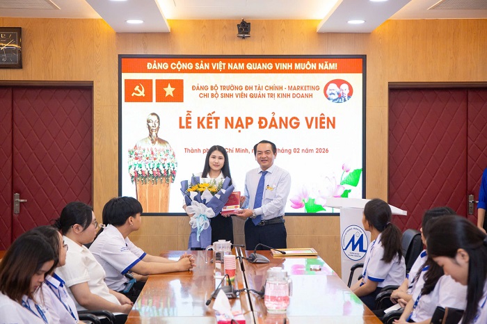 Tiếp nối chuỗi hoạt động chào mừng, sáng 3/2/2026, Chi bộ sinh viên Quản trị kinh doanh đã tổ chức Lễ kết nạp Đảng viên mới trong không khí trang nghiêm, xúc động, thể hiện sự trưởng thành về nhận thức chính trị và niềm vinh dự của sinh viên UFM khi được đứng vào hàng ngũ của Đảng.