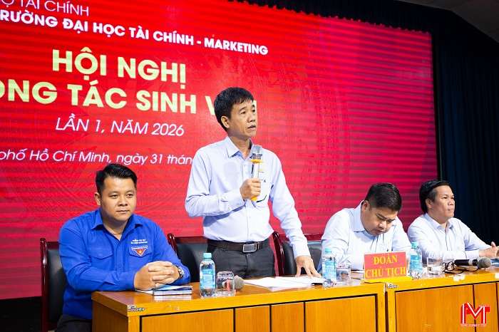 Ngày 31/3/2026, Trường Đại học Tài chính – Marketing (UFM) đã tổ chức Hội nghị công tác sinh viên lần 1 năm 2026, với sự tham gia của TS. Cao Tấn Huy, Phó Hiệu trưởng Nhà trường cùng đại diện lãnh đạo các đơn vị chức năng và Ban cán sự các lớp đến từ cơ sở Long Trường và cơ sở Tân Thuận. Hội nghị là diễn đàn quan trọng nhằm tăng cường đối thoại giữa Nhà trường và sinh viên, kịp thời nắm bắt tâm tư, nguyện vọng cũng như giải quyết các vấn đề phát sinh trong quá trình học tập, rèn luyện.