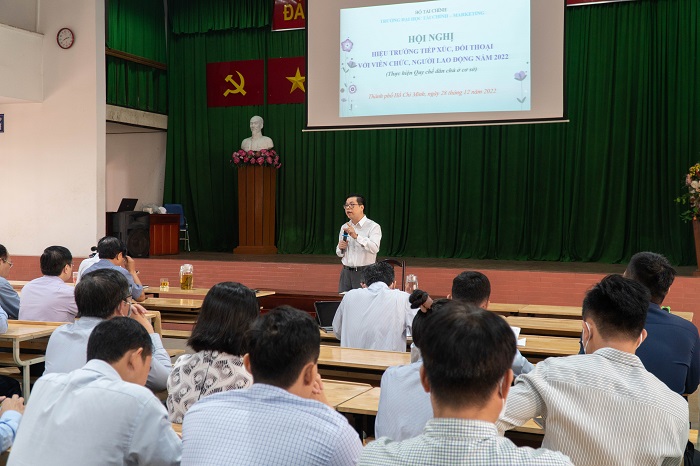 Hội nghị Đối thoại giữa Hiệu trưởng với Viên chức, Người lao động là một kênh thông tin hữu ích để lãnh đạo Nhà trường nắm bắt, lắng nghe những tâm tư, nguyện vọng của viên chức, người lao động trong toàn trường, qua đó cùng nhau chia sẻ, lan tỏa tinh thần tích cực, trách nhiệm cao trong tập thể viên chức, người lao động, góp phần kết nối sự đoàn kết, nhiệt huyết, đồng lòng, chung sức xây dựng Trường Đại học Tài chính – Marekting ngày càng vững mạnh, ổn định, hướng tới tương lai, cũng như triển khai nhiệm vụ năm học 2022-2023 thắng lợi.
