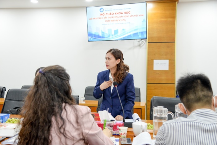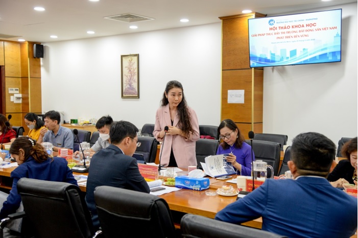 PGS.TS Hồ Thủy Tiên nhấn mạnh “Giải pháp thúc đẩy thị trường bất động sản Việt Nam phát triển bền vững” được tổ chức mang tính cấp thiết, kịp thời và có ý nghĩa với nhiều ý kiến được trao đổi trực tiếp tại hội thảo từ các chuyên gia, doanh nghiệp, cơ quan Quản lý Nhà nước,… Ban tổ chức sẽ nghiên cứu, tổng hợp báo cáo khuyến nghị chính sách gửi đến các cơ quan quản lý, trước hết là Bộ tài chính để có thêm cơ sở lý luận, thực tiễn trong công tác quản lý, xây dựng, triển khai các chính sách phát triển bền vững thị trường bất động sản ở Việt Nam.
