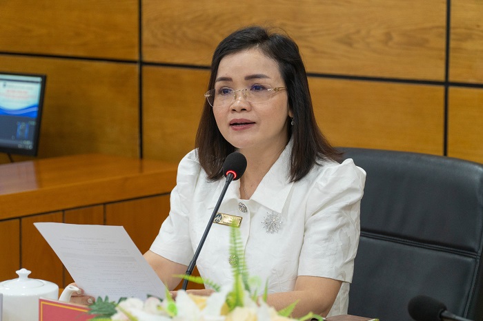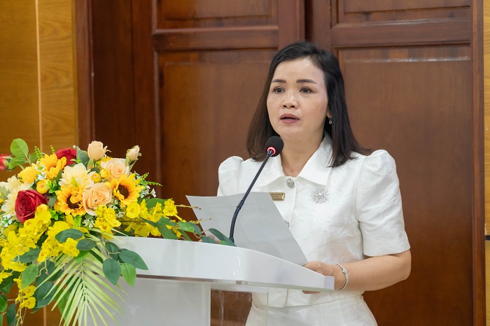 PGS.TS Huỳnh Thị Thu Sương, Trưởng khoa Quản trị kinh doanh phát biểu khai mạc Hội thảo