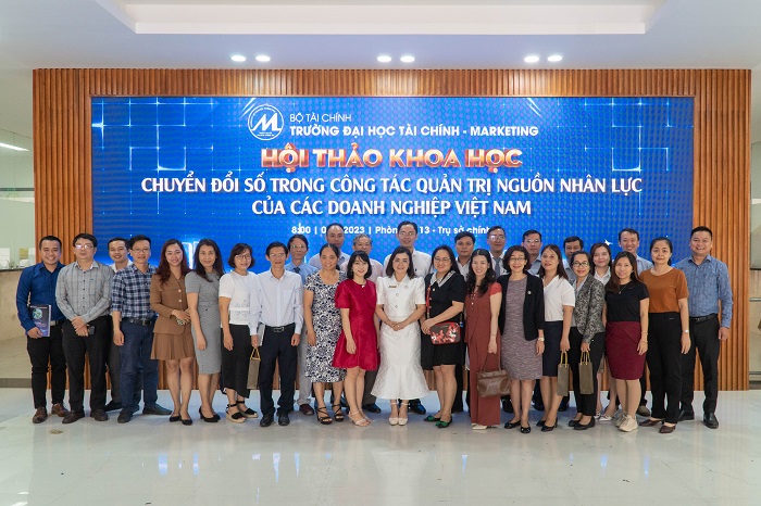 Sáng ngày 02/3/2023, Trường Đại học Tài chính – Marketing đã tổ chức Hội thảo khoa học với chủ đề: “Chuyển đổi số trong công tác quản trị nguồn nhân lực ở các doanh nghiệp của Việt Nam”. Tham dự Hội thảo có sự hiện diện và chủ trì của PGS.TS Huỳnh Thị Thu Sương, Trưởng khoa Quản trị kinh doanh; TS. Huỳnh Thanh Điền, Tổng công ty May 28 cùng các nhà khoa học, các thầy cô lãnh đạo, nguyên lãnh đạo các trường Đại học và đông đảo quý lãnh đạo các doanh nghiệp trên địa bàn TP.HCM.