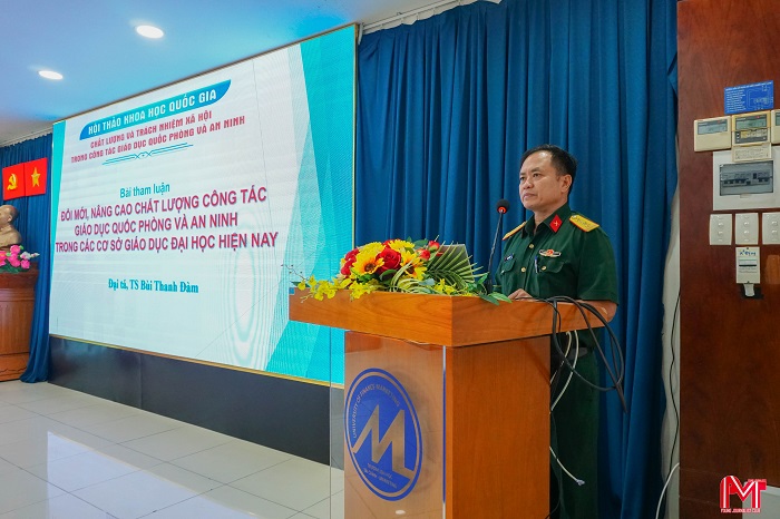 Phát biểu ý kiến tại Hội thảo, Thiếu tướng, TS. Trần Ngọc Thanh, Vụ trưởng Vụ GDQP&AN, Bộ GD&ĐT đánh giá cao công tác tổ chức Hội thảo, hàm lượng khoa học và những đóng góp ý kiến thực tế từ đại biểu. Thiếu tướng cũng thông tin thêm, Vụ GDQP&AN, Bộ GD&ĐT đang tham mưu, đề xuất các phương án để giải quyết các khó khăn, vướng mắc hiện tại của các cơ sở giáo dục khi giảng dạy môn học này. Đồng thời, yêu cầu các giảng viên khi dạy môn GDQP&AN đừng quá cứng nhắc, dạy làm sao cho sinh viên dễ nhớ, dễ hiểu và rèn luyện được sự kỷ luật, ý thức về yêu nước, sự tự hào, tự tôn dân tộc. Nội dung giảng dạy bám sát thực tế, thực tiễn linh hoạt, uyển chuyển phù hợp từng đối tượng để chất lượng công tác GDQP&AN được nâng cao hơn nữa.