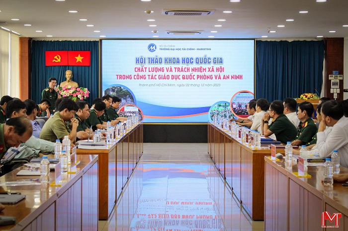 Sáng ngày 02/12/2023, Trường Đại học Tài chính – Marketing (UFM) đã tổ chức Hội thảo khoa học quốc gia với chủ đề: “Chất lượng và trách nhiệm xã hội trong công tác Giáo dục quốc phòng và an ninh”. Hội thảo nhằm thảo luận, nghiên cứu các giải pháp để nâng cao chất lượng dạy - học môn Giáo dục quốc phòng và an ninh (GDQP&AN) cho sinh viên các Trường trên cả nước nói chung và UFM nói riêng.