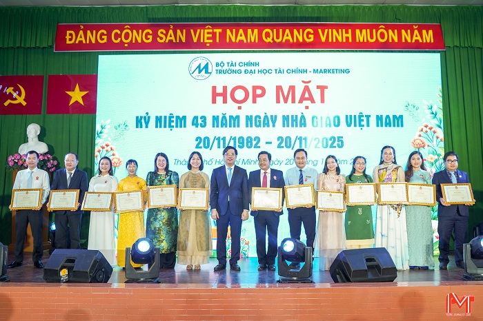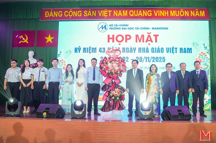 Sáng ngày 20/11/2025, Trường Đại học Tài chính – Marketing (UFM) đã long trọng tổ chức Họp mặt kỷ niệm 43 năm Ngày Nhà giáo Việt Nam 20/11 trong không khí trang trọng, ấm áp và giàu cảm xúc tri ân. Chương trình có sự tham dự của Đảng ủy, Hội đồng trường, Ban Giám hiệu, các thầy cô nguyên là lãnh đạo trường qua các thời kỳ, cùng đông đảo giảng viên, viên chức và sinh viên.