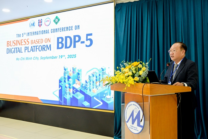 Tiếp nối 4 kỳ Hội thảo BDP, sáng ngày 19/9/2025, Trường Đại học Tài chính – Marketing (UFM) cùng phối hợp với Trường Đại học Ngân hàng TP.HCM, Trường Đại học Tài chính – Quản trị kinh doanh (Hưng Yên) và Trường Kinh tế - Đại học Cần Thơ tổ chức hội thảo quốc tế với chủ đề “Kinh doanh trên nền tảng công nghệ số”, lần thứ 5 (BDP-5) với sự tham gia của nhiều nhà khoa học trong nước và quốc tế.