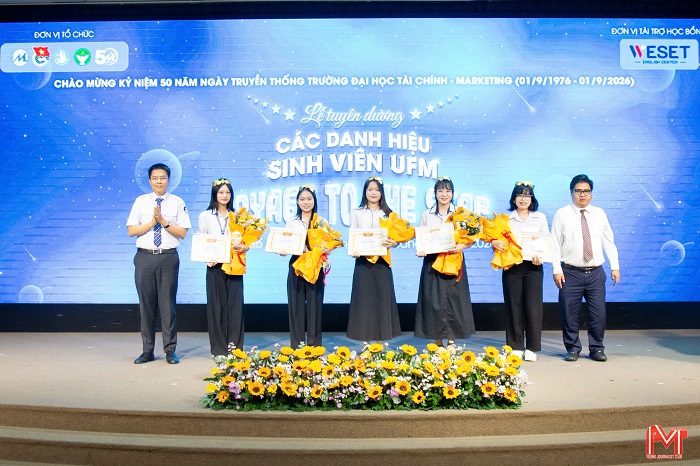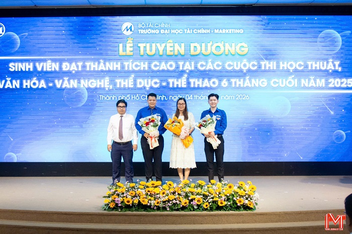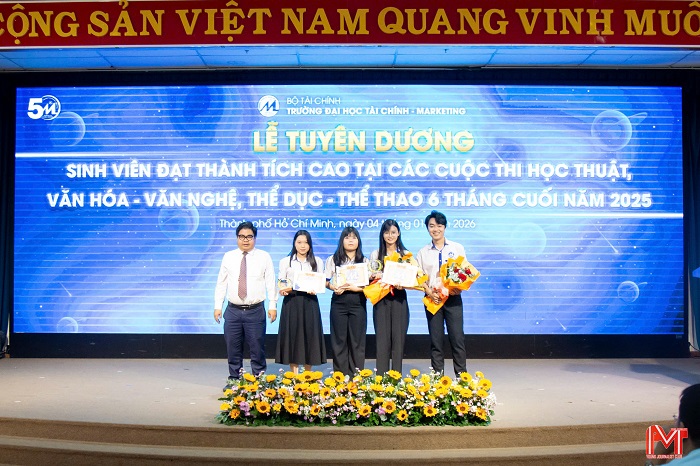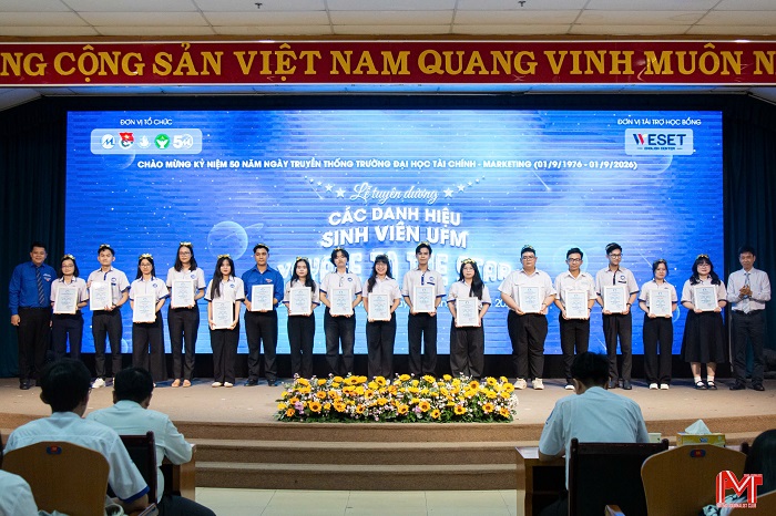 Nhằm ghi nhận, biểu dương và khen thưởng các sinh viên đạt thành tích cao tại các cuộc thi học thuật, văn hoá - văn nghệ, thể dục - thể thao 6 tháng cuối năm 2025 và tri ân giảng viên hướng dẫn, đồng thời vinh danh những cá nhân tiêu biểu đạt danh hiệu Sinh viên 5 tốt cấp Thành, cấp Trường và Hình mẫu Sinh viên UFM, vào chiều ngày 04/1 vừa qua Trường Đại học Tài chính - Marketing (UFM) long trọng tổ chức Lễ tuyên dương sinh viên đạt thành tích cao tại các cuộc thi học thuật, văn hoá - văn nghệ, thể dục - thể thao 6 tháng cuối năm 2025 và tuyên dương các danh hiệu sinh viên UFM năm 2025.